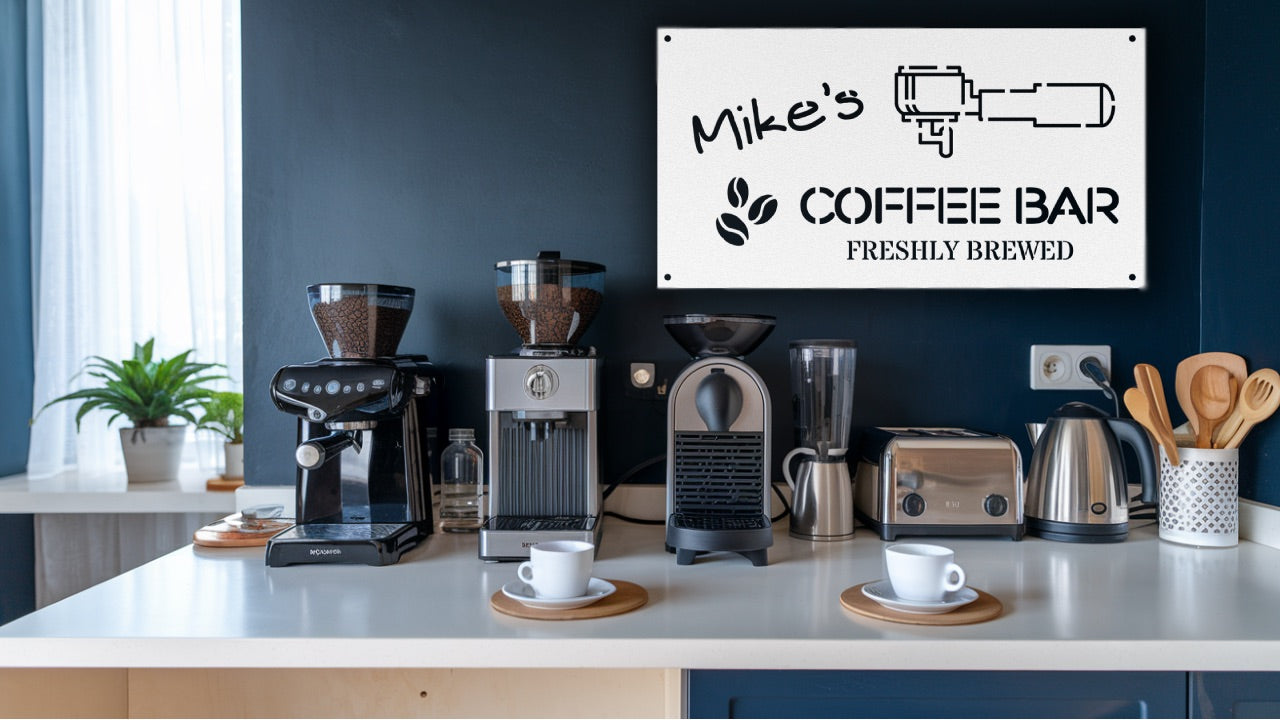 Personalize your Coffee Metal Sign. Add your signature to your coffee station.
